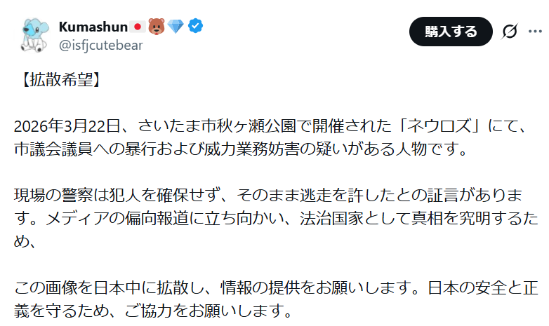 「おはようございます。昨日、日本各地で反移民デモが開かれました。新宿や京都などで数百人が集まり、「移民反対!日本を取り戻そう!」と訴えました。日本第一党のデモには100人以上が参加。外国人頼みの政策にNOを突きつけましたが、そこで川井氏が殴られる事件が起きてしまいした。